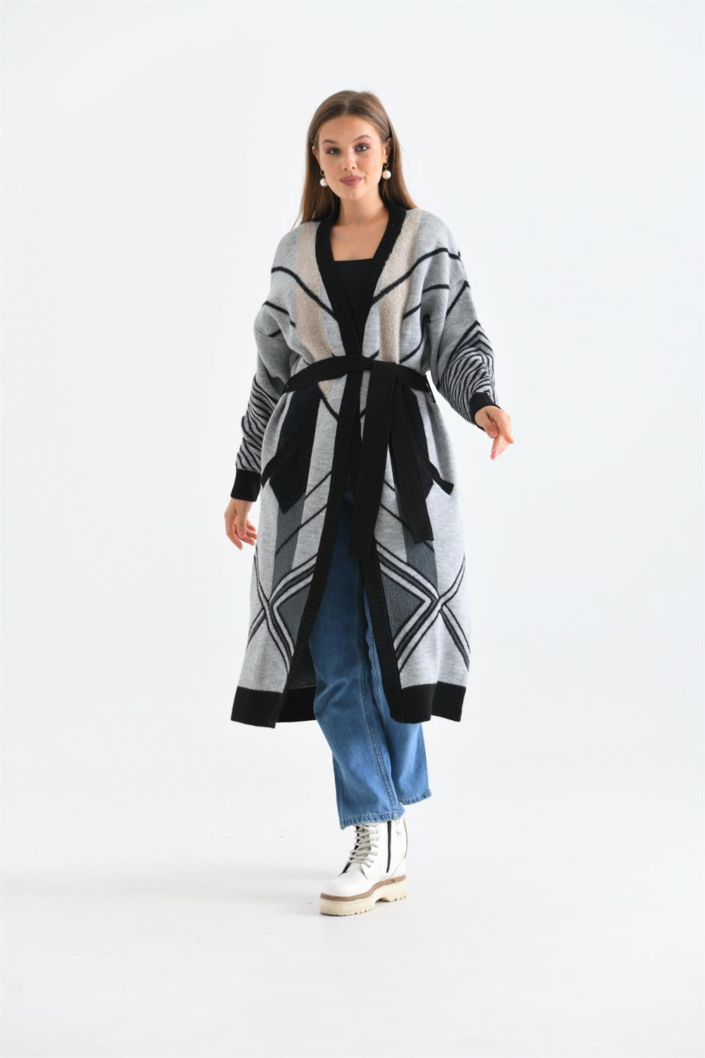 Kadın Karışık Desen Cep Detay Hırka SİYAH